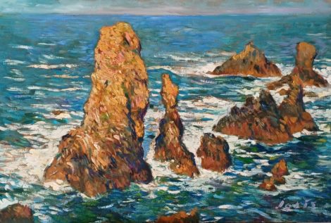 Les Aiguilles de Port Coton. Huile sur bois 30x45cm (disponible à la galerie « Aquarelle » à Crozon)